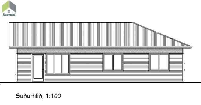 Þessi teikning er stækkuð mynd af 135 fm húsinu. Búið er að aðlaga bílskúr sem með einföldum hætti er hægt að breyta í studio íbúð. Tekið hefur verið tillit til geymslupláss og það fært á geymsluloft.